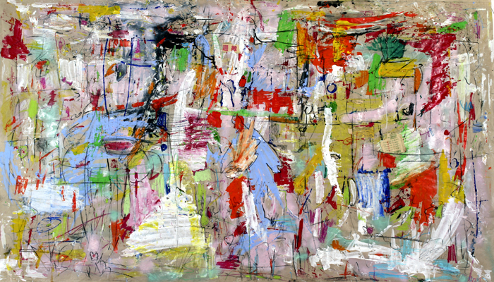 Mischtechnik: Acryl, Kreide, Kohle, Bleistift etc. gemalt auf Packpapier Maße: 1 x 1,70 m (unteres Bild), ohne Rahmen Preis auf Anfrage