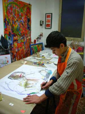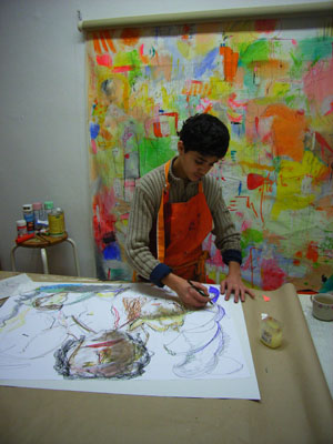 Einige Kinder aus der Nachbarschaft kommen nach der Schule in mein Atelier um zu Malen. Es ist sehr schön zu beobachten mit welcher Freude und Hingabe und auch mit Talent diese Kinder und Jugendlichen an die Sache heran gehen. Und am schönsten ist, dass wir großen Spaß miteinander haben. Fürth, 10.02.2006