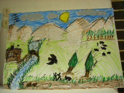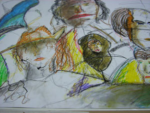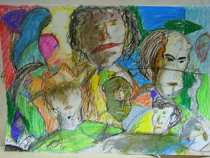 Das ist Kurdos Werk, er hat es entstehen lassen, angefangen mit Strichen und dann mit Ölkreide ausgearbeitet, es ist noch nicht ganz fertig. Nächste Woche geht es weiter und ich werde es hier wieder veröffentlichen.