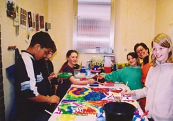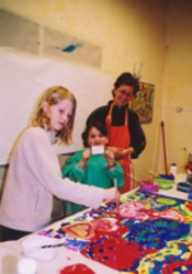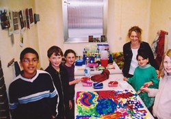 Die Aktivitäten - Sie kommen auf mich zu....Eine Freundin hat mich angesprochen, ob Sie nicht mit Ihrer Kindergruppe aus dem Hort zu mir ins Atelier kommen könnte, Sie wolle den Kindern dies mal zeigen. So kamen sie und die Kinder haben gemeinsam ein Bild gemalt, welches nun selbstverständlich im Hort aufgehängt wurde