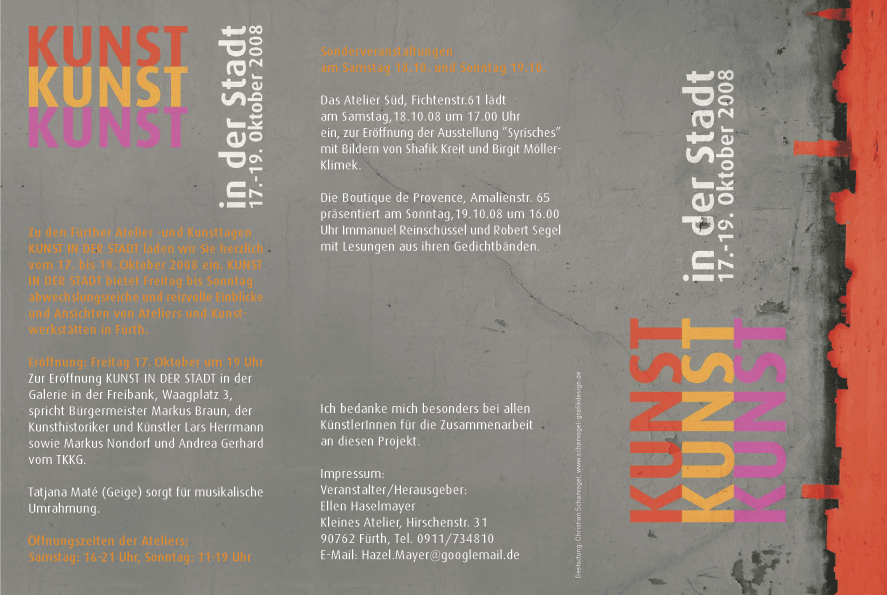 Ausstellung im eigenenAtelier GalerieWerkstatt Blickwinkel 18./19.10.2008Kunst in der Stadt