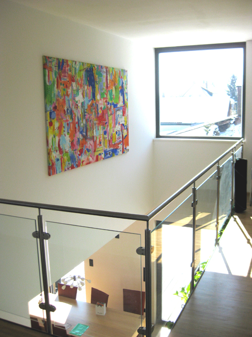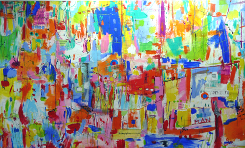 Gesamtmass: ca. 2,10m x 2,30m, Material: Acryl auf Leinwand, Mischtechnik, Malerei mit Collage