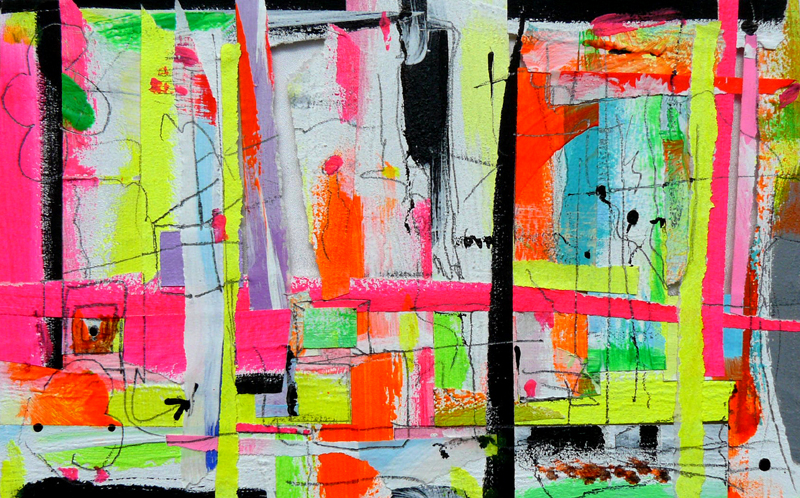 Acryl auf Klebestreifen, aufgezogen auf Plexiglasplatten - Maß ca. 12 x 20 cm, folgt noch exakt