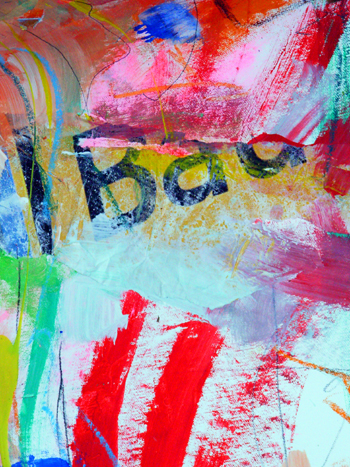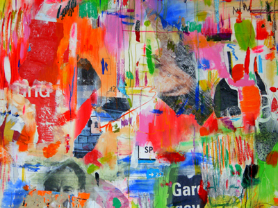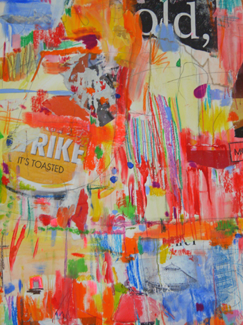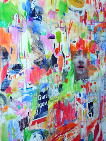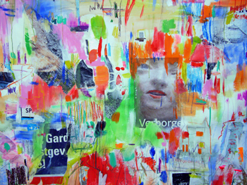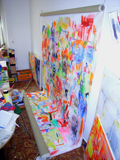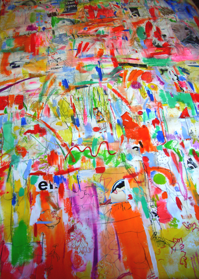 Die Länge dieses Werkes beträgt knapp 5,00 m x 2,10 m Technik: Collage und Malerei Material: Acryl, Ölkreide, und Teile einer Plakatwand