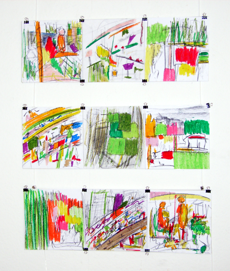 Titel: wenn jemand eine Reise tut... gemalt mit Ölkreide, Kohle, Bleistift auf Papier Maße: 20 x 20 cm je Blatt Preis auf Anfrage